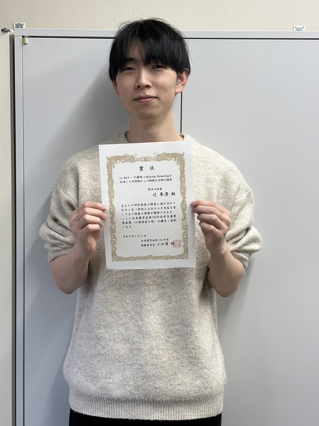- 2026年4月16日 日本薬学会第146年会の一般学術発表において、辻くんが学生優秀発表賞を受賞しました。